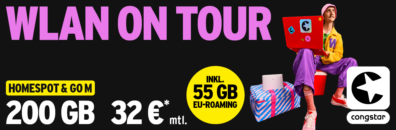 Ihre Kunden genießen mit dem congstar Homespot & Go Highspeed-Internet bis zu 50 Mbit/s ohne Festnetzanschluss. Einfach einstecken und sofort lossurfen – zuhause oder an jedem Ort Ihrer Wahl. Ideal für Zwischenmiete, Wochenendhäuser oder direkt nach dem Umzug.